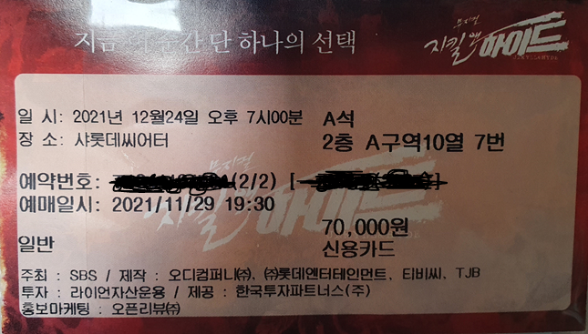 더 비싼 티켓으로 볼껄하는 후회를 계속 하고 있습니다 ㅠㅠ