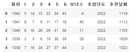 회차별 당첨번호 데이터가 있어야 예측할 수 있겠죠??